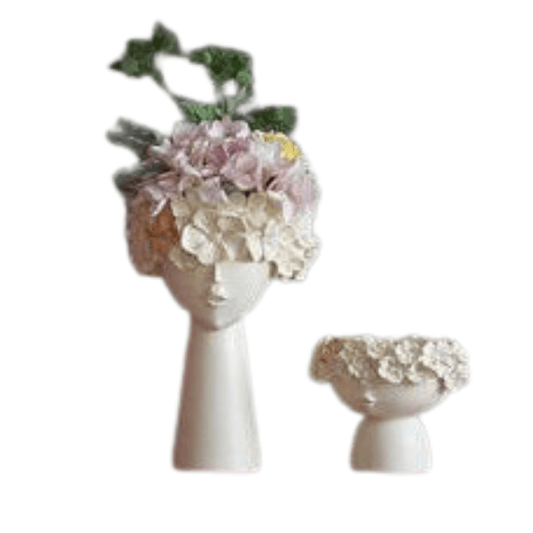 Floral Head Lady (White) β Elegant Artistic Lady Sculpture